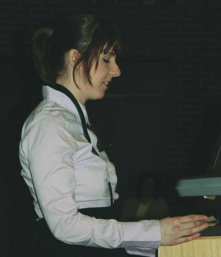 OT student Rebecca Todor spoke on behalf of her class about her experiences at the McGill name tag ceremony.